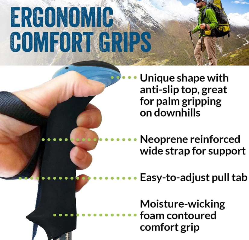 Dvojitá rukojeť skládací trekking pól, vzduch nastavitelného 2dílného skládacího turistiky / chůze / trekkingových pólů, které se zhroutí na pouhých 13,5 palce a váží každý méně než 11 uncí. Perfektní dárek pro milovníka cestování. Vyberte si tyče, které odpovídají vaší výšce a výběru rukojetí.