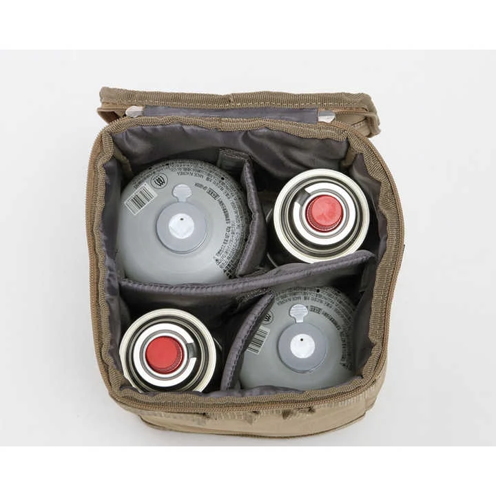 Vrchola nádoby na plynový sporák, jiná velikost kanystry butanového paliva podobná velikosti. Lze také použít pro další příslušenství pro kempování, když je odstraněn vnitřní dělič