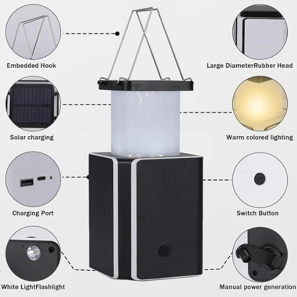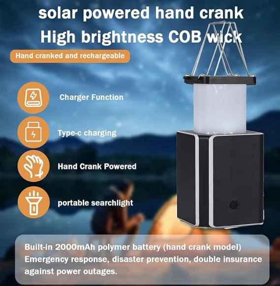 IPX4, Nouzová světla výroba napájení rukou, funkce mobilního napájení na napájení mobilního telefonu ,, nouzová světla, baterky, varovná světla SOS., Sluneční LED dobíjecí nouzová lucerna, sluneční dobíjení, dobíjecí typ C,