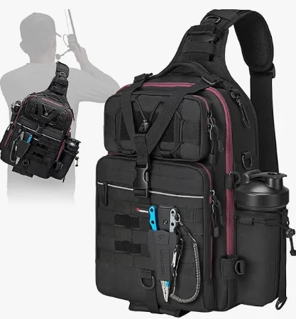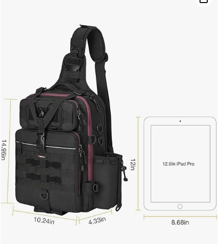Odnímatelné ramenní popruhy usnadňují použití tohoto sáčku jako sáčku na ramen, batoh, kabelka, tašku na hrudi, tašku na rybářský náčiní nebo cestovní sáček. Se dvěma prutovými pásy, které drží vaše pruty, lze hlavní délku popruhu prodloužit až na 51,2 '', zatímco přidružený popruh lze prodloužit na 36,2 ''