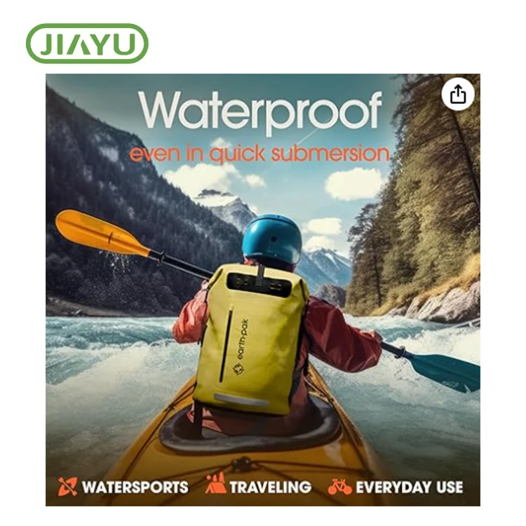 Vodotěsný suchý batoh duffel. Velký zip odolný vůči stříkajícímu na vnější straně pro rychlé chytání a Go předměty a vestavěná kapsa na zip, síťový kompartment a klíčový prsten na vnitřní straně.Zhejiang Jiayu Outdoor Products Co., Ltd. Kompaktní a lehké pro snadné přenášení letadla a horního uzávěru poskytuje nejvyšší ochranu při cestování. Pohodlné D-kroužky připojené k ramenním popruhům a smyčkám Molle System Oba poskytují kotevní body, na které se západku při plavbě nebo na kole.