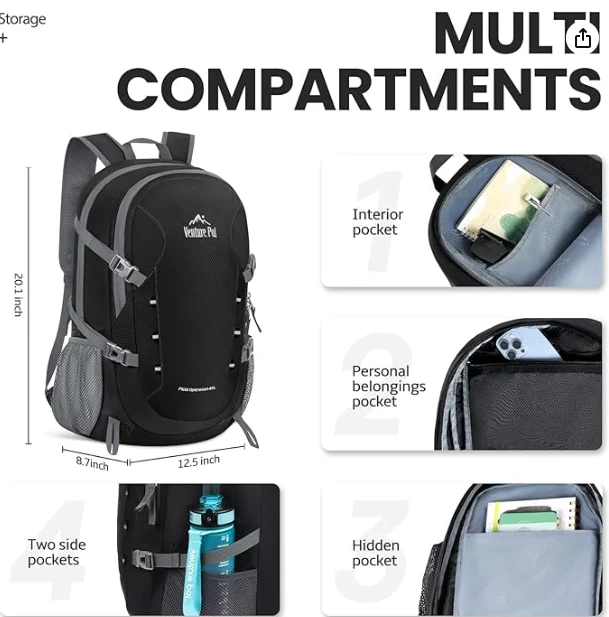 Do hlavního prostoru se přidává vodotěsná turistická skládací skládací batoh, jedna vodotěsná mokrý kapsa, zip na zadní straně tohoto batohu, který vedl k vnitřní mokré kapse, k lepšímu oddělenému zpocenému oblečení, ručníkům nebo jiným osobním věcem po plavání nebo cvičení
