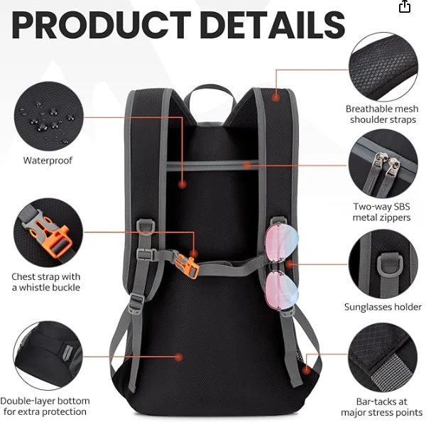Vodotěsná turistická skládací batoh, hrudní klip s píšťalkou sponou fungují perfektně pro distribuci hmotnosti smečky a udržení je stabilní a vystředěné. Musí mít pro sporty, turistiku a Campingzhejiang Jiayu Outdoor Products Co., Ltd. Zvýšení viditelnosti během nočních outdoorových aktivit. Tento design zajišťuje, že zůstanete viditelný pro ostatní a zvyšujete bezpečnost, když jste venku